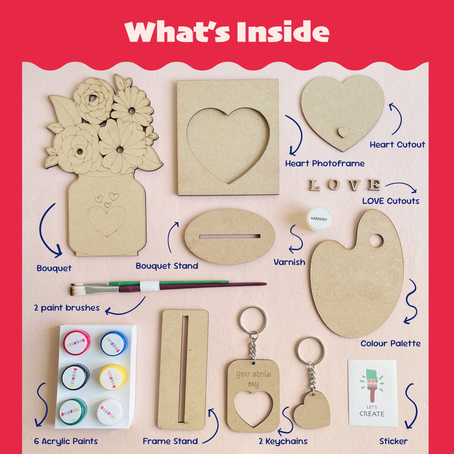 Perfect for couples, this combo kit offers a fun and meaningful experience. Paint, decorate, and personalize each item with your partner to make unique keepsakes that celebrate your love. Whether it's for a cozy night in or a special gift exchange, this kit helps you craft a memorable Valentine's celebration that you'll both cherish forever.