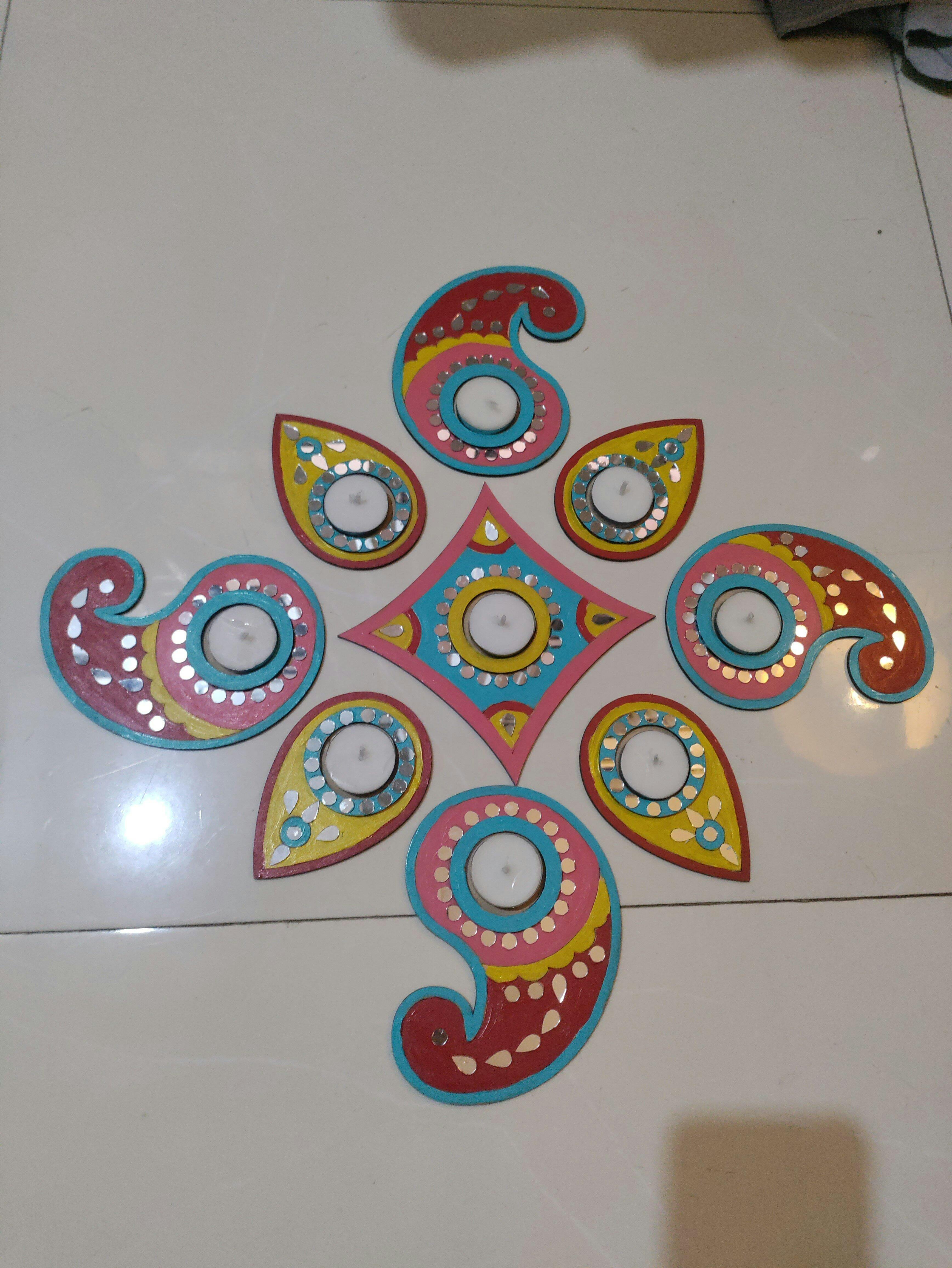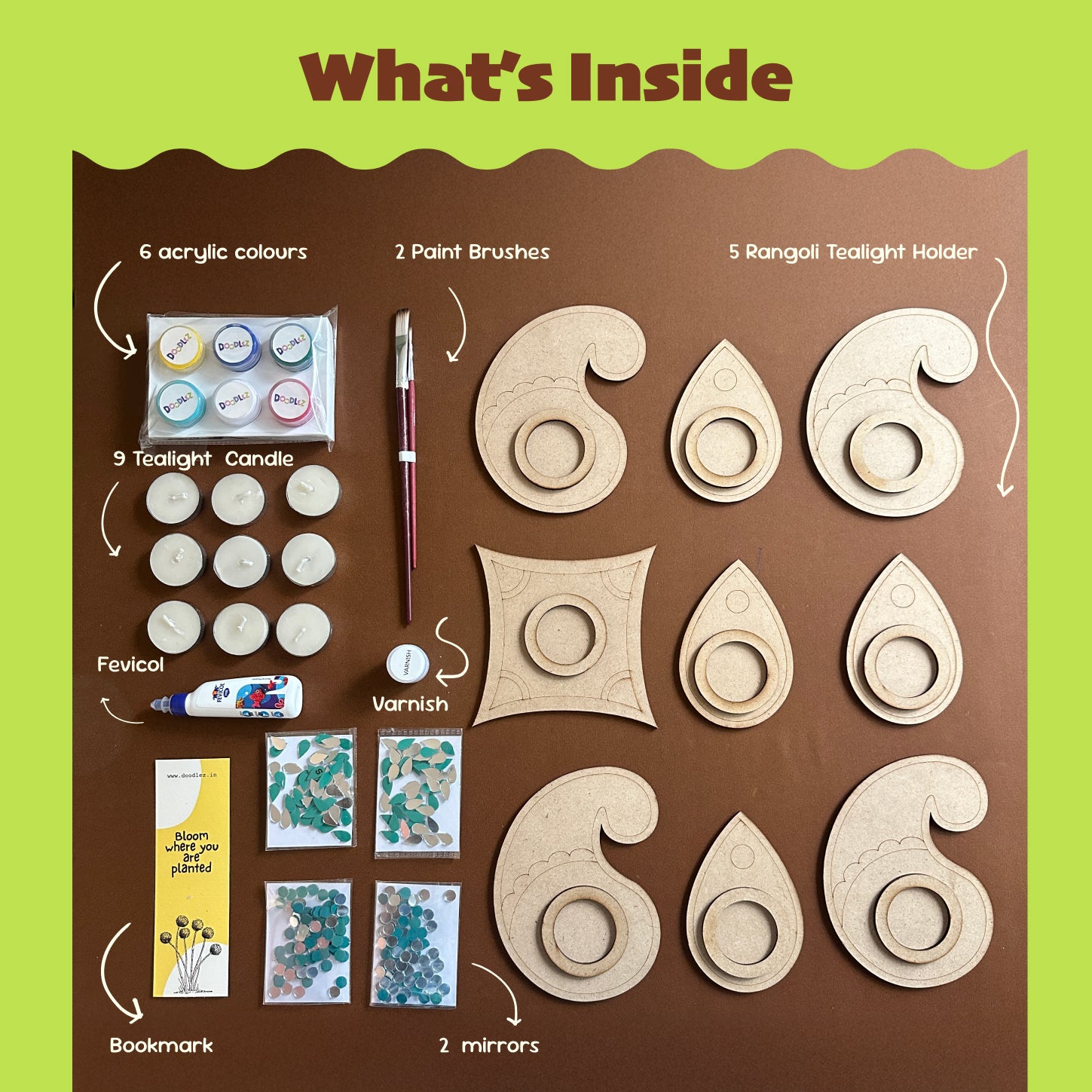 Perfect for festivals, home décor, or simply enjoying a mindful creative break, this kit helps you design unique paisley-inspired rangoli holders that glow with charm and tradition.