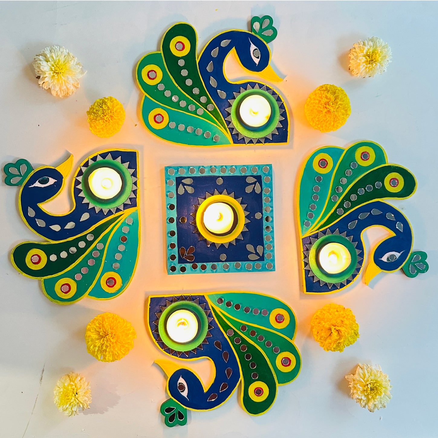 Create Your Own Peacock Rangoli Tealight Holders! 🪔✨